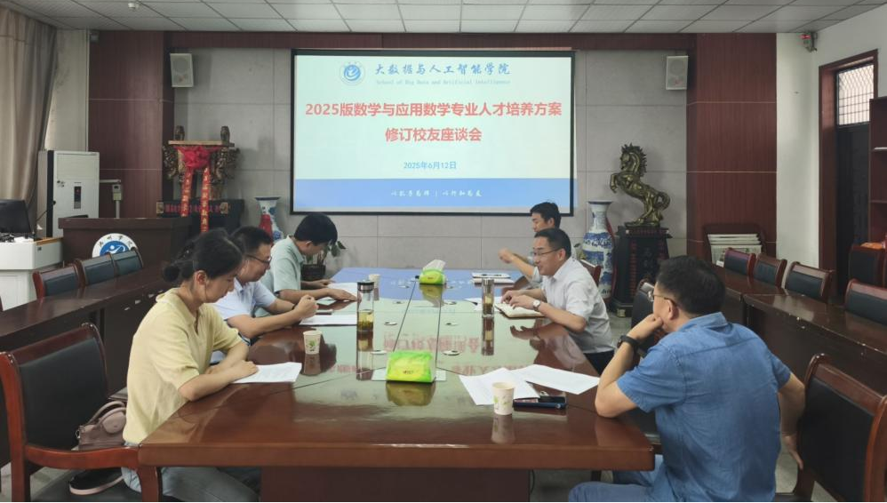 为深化数学与应用数学专业人才培养改革,充分听取校友建议,促进专业建设与行业发展需求紧密衔接,6月12日,数学系邀请安徽工业大学盛洲副教授、安庆市怀宁中学的程小宝老师、池州市第十中学的储晶老师参加2025版数学与应用数学专业培养方案修订座谈会。大学公共数学教学部主任曹怀火教授和数学系主任包小兵副教授参加了此次会议。座谈会由学院副院长张永主持。