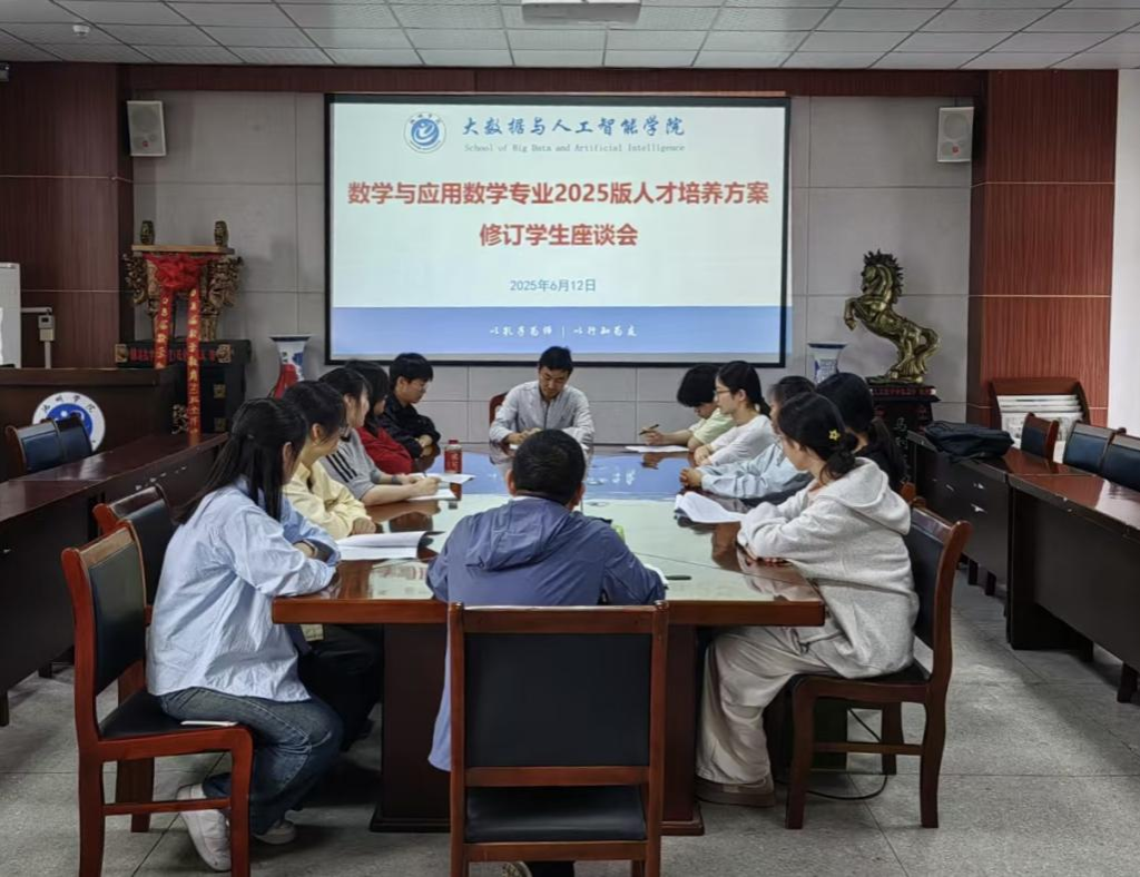 为进一步优化数学与应用数学专业人才培养方案,倾听学生需求,提升教学质量,数学系于2025年6月12日上午在博奕南一楼会议室召开2025版数学与应用数学专业培养方案修订学生座谈会。学院副院长张永和来自22级、23级、24级的10余名学生代表参加会议。会议由数学系主任包小兵主持。