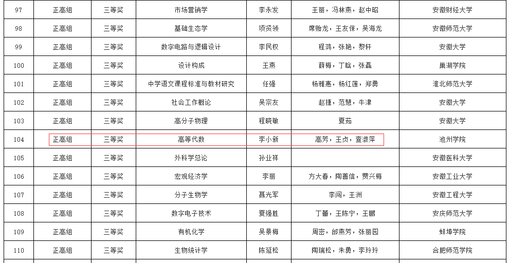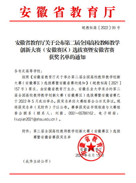 近日,由安徽省教育厅主办、安徽农业大学承办的第二届全国高校教师教学创新大赛(安徽赛区)选拔赛暨安徽省赛圆满收官,我院李小新教师团队(课程:高等代数)获得正高组三等奖。