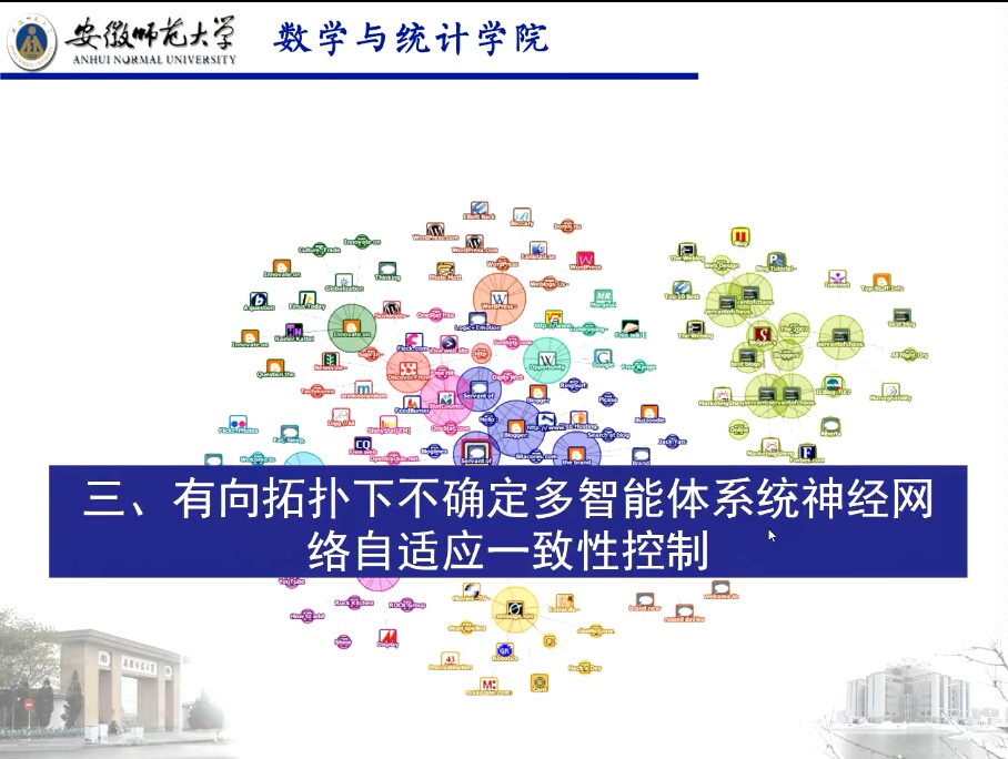 报告会上,王佩君博士首先以“多智能体系统协调控制的研究背景”为抓手,结合着“多智能体系统协调控制包含的几个问题”展开了详尽而又精湛的讲述,对其国内外的发展及其现状进行了系统全面的分析。随后,王佩军博士讲述了“切换拓扑下多智能体系统一致性控制”的相关问题,他生动形象的讲述使得晦涩难懂的专有名词变得通俗易懂,参加讲座的同学们都深深的沉浸在浓厚的学术氛围中。紧接着,王佩君博士并通过图文结合的方式,讲述了“有向拓扑下不确定多智能体系神经网络自适应一致性控制”有关的问题,解释了影响一致性实现的关键因素,加深了同学们对这一内容的理解与掌握。